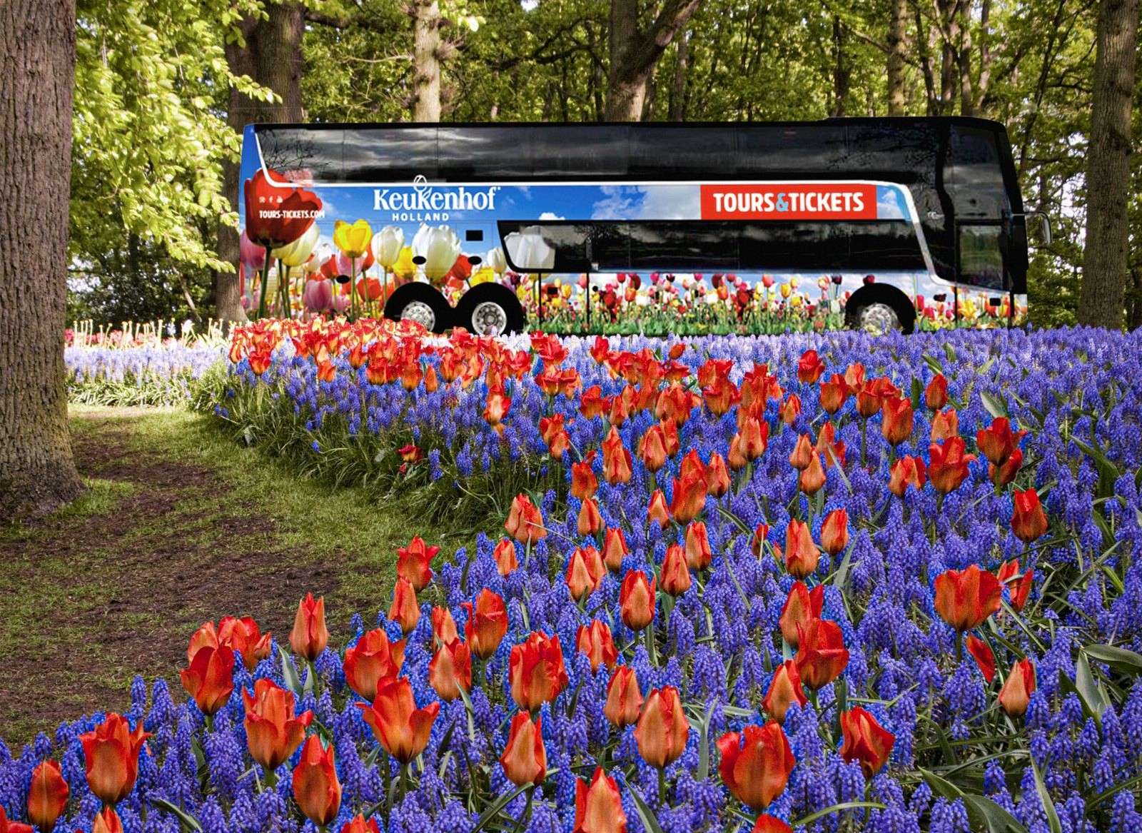 Tours & Tickets organiseert comfortabele bustours naar Keukenhof, direct vanaf Amsterdam Centraal. De comfortabele bussen vertrekken zes keer per dag naar Keukenhof! Tijdens de rit kan je de prachtige tulpenvelden uit het raam bewonderen, en aan het eind van de tour word je weer bij Amsterdam Centraal afgezet. Tours & Tickets biedt diverse mogelijkheden. Tours inclusief audiogids en rondvaart of met een tussenstop bij Tulip Experience Amsterdam. Met onze tours breng je een ontspannen en inspirerend bezoek aan Keukenhof vanuit Amsterdam.